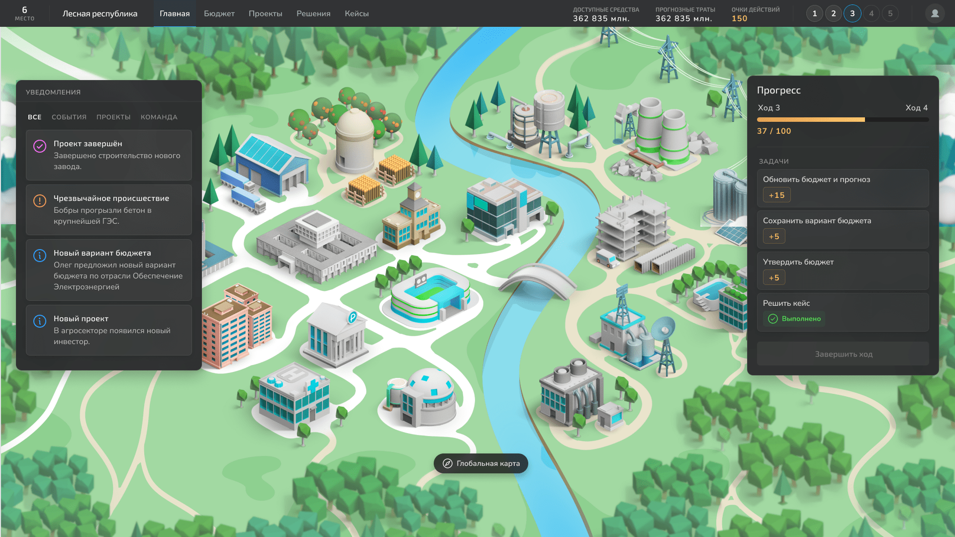 Помогает тестировать стратегии развития региона и видеть последствия решений