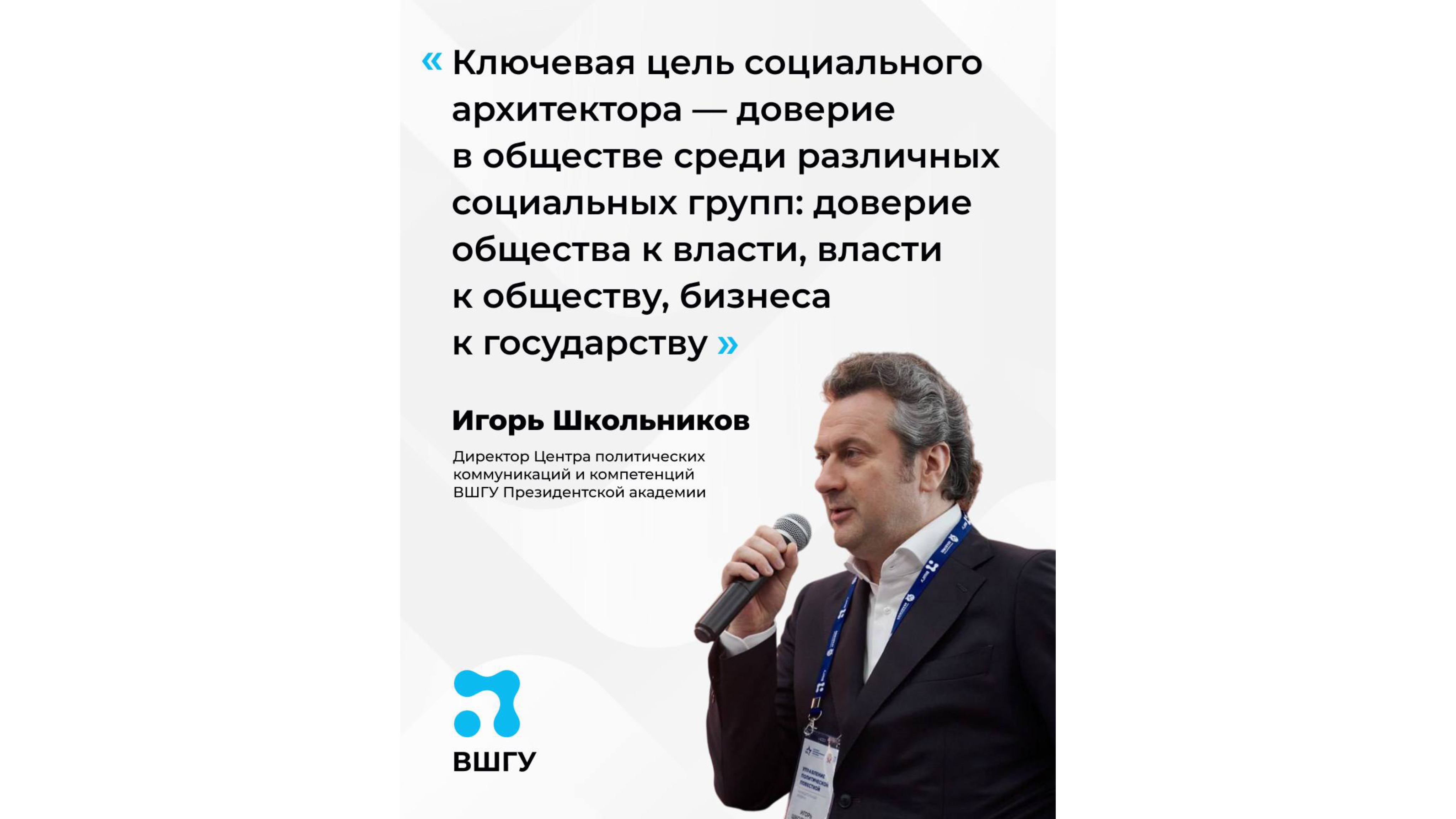 О том, что такое социальная архитектура и какие актуальные задачи стоят перед социальными архитекторами, рассказал директор Центра политических коммуникаций и компетенций ВШГУ Президентской академии Игорь Школьников.