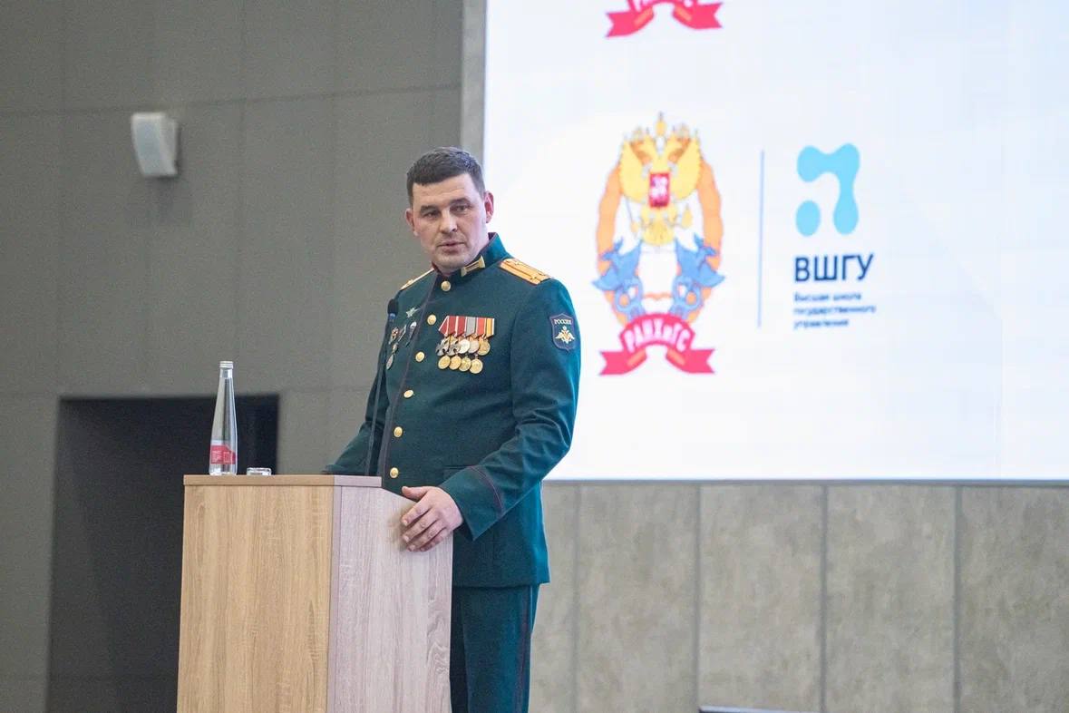 О служении России как высшем приоритете гражданской и военной службы участникам рассказал Николай Сергиенко, полковник ВС РФ, участник СВО и программы «Время героев», общественный советник Губернатора Новгородской области.